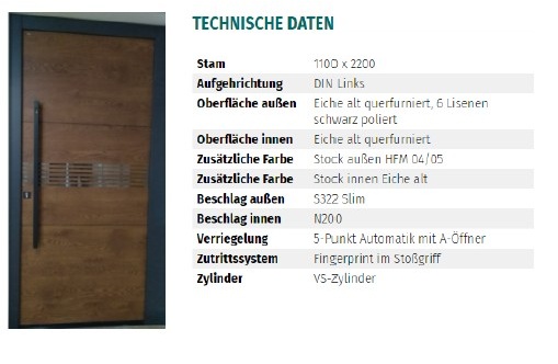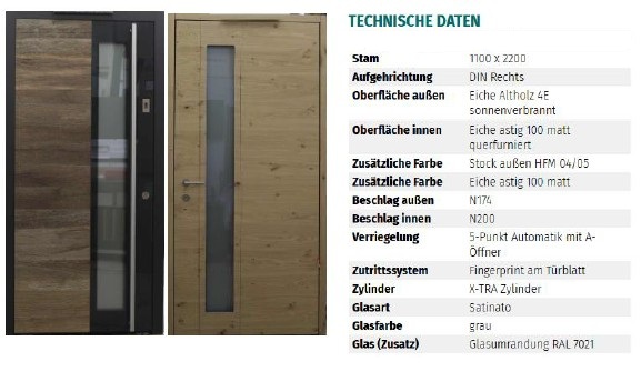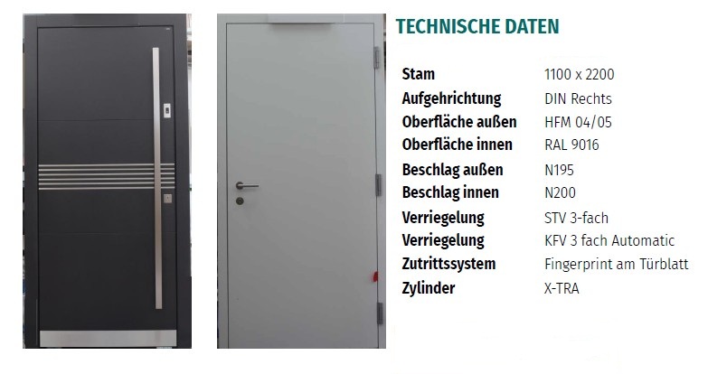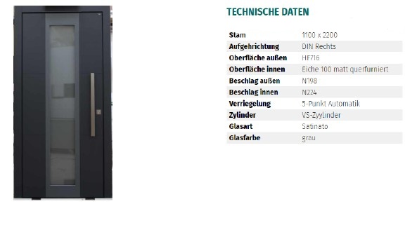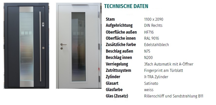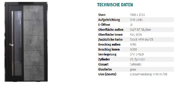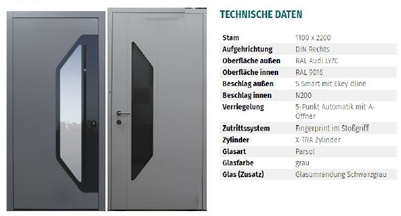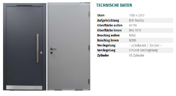 • Größe: 1100 x 2090 mm, Oberfläche Aussen RAL 7016